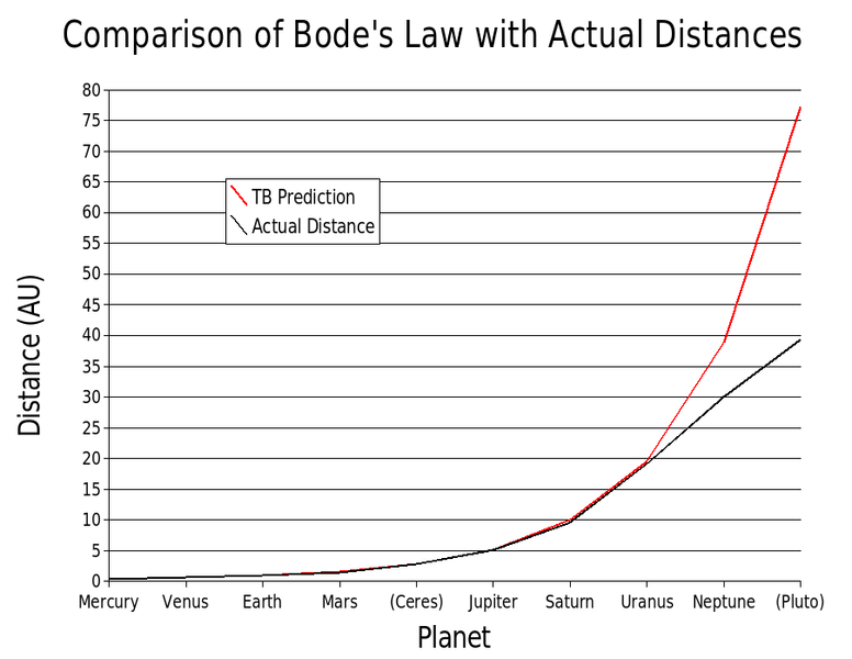 Distintos astrónomos elaboraron series matemáticas que aproximasen las distancias al Sol de los planetas conocidos, con mayor o menor precisión, buscando orden en el aparente caos. Uno de ellos, además, fue más allá. Se trataba de Johann Daniel Titius, quien realizó los cálculos pertinentes, y observó que la serie que había calculado proporcionaba muy buenos resultados para los planetas conocidos, pero predecía uno más que nadie había observado. En sus propias palabras, en 1766,