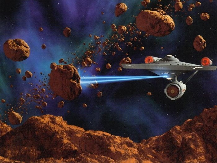 Pueden parecer muchos asteroides, pero recuerda que la región en la que se encuentran es gigantesca. Si atravesaras el Cinturón con los ojos cerrados, la probabilidad de que te topases con uno sería minúscula. Ya sé que en las películas de ciencia-ficción, cuando una nave entra en un cinturón de asteroides, se produce una escena escalofriante en la que el piloto esquiva las rocas espaciales o las va destruyendo con gran habilidad según se acercan, pero en la realidad pasaría justo lo contrario – haría falta un gran esfuerzo para conseguir tocar uno.