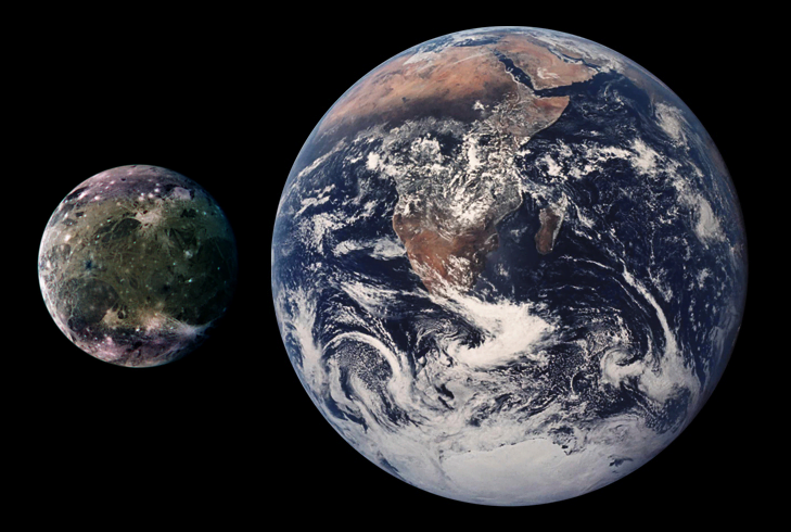 Tamaños comparados de Ganímedes y la Tierra (NASA).
